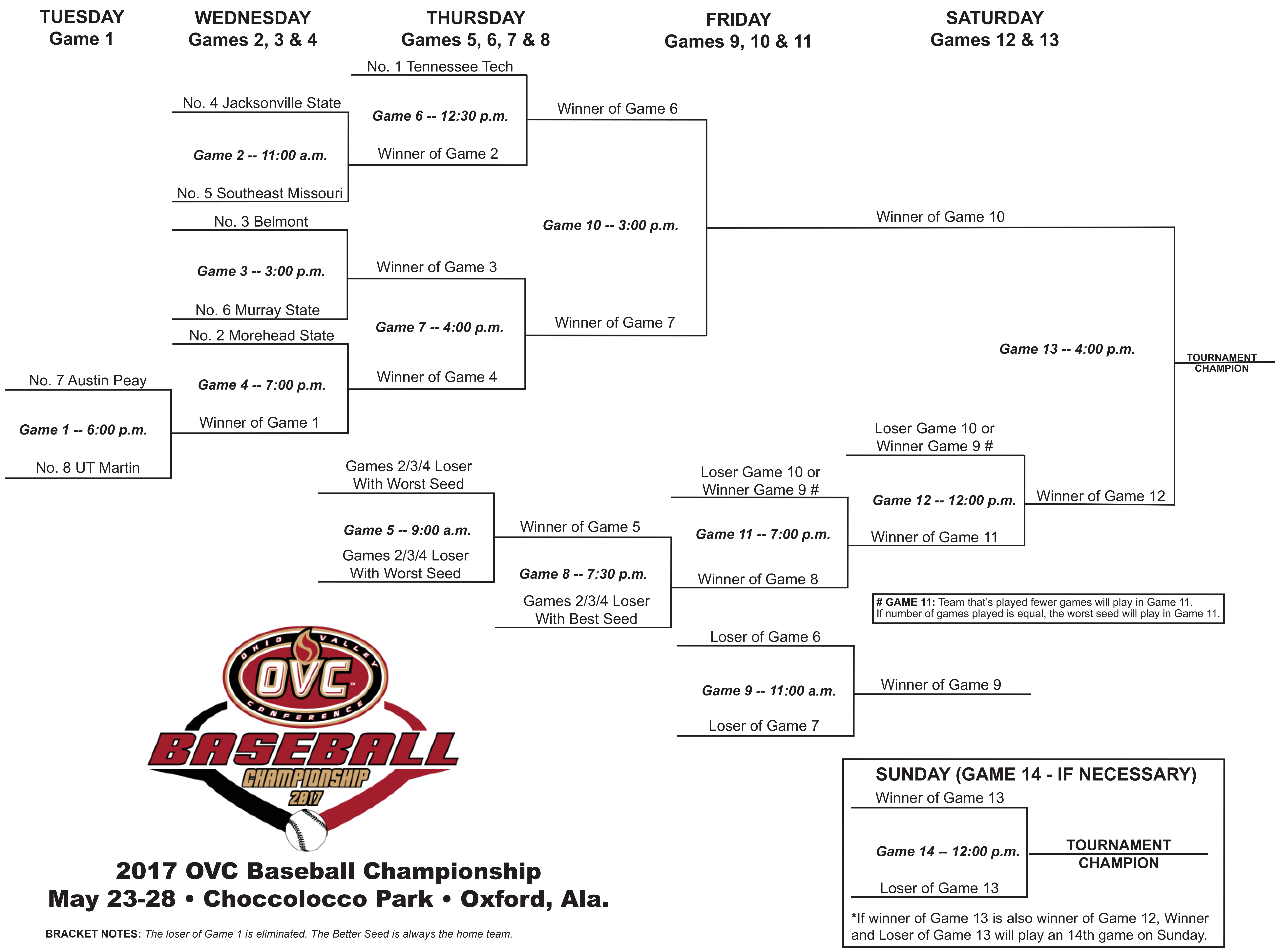 All OVC Tournament games will be streamed live on the OVC Digital Network and can be followed along with live stats – links for both are provided on the OVC Tournament Central site (link provided below). In addition, each of the Belmont games will be broadcasted on the Bruin Sports Network as well as have in-game coverage on twitter @BelmontBaseball.